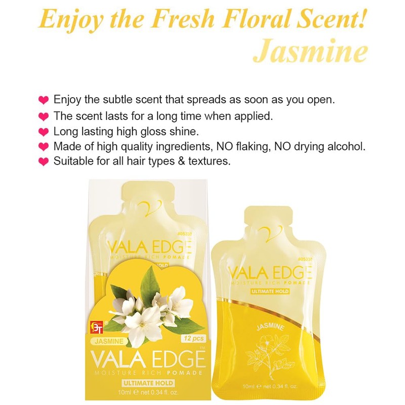 12 Pack 10ml Vala Edge Control Braiding Gel Pomade Strong Hold High Shine Made in Korea Beauty Styling Gel (Jasmine)