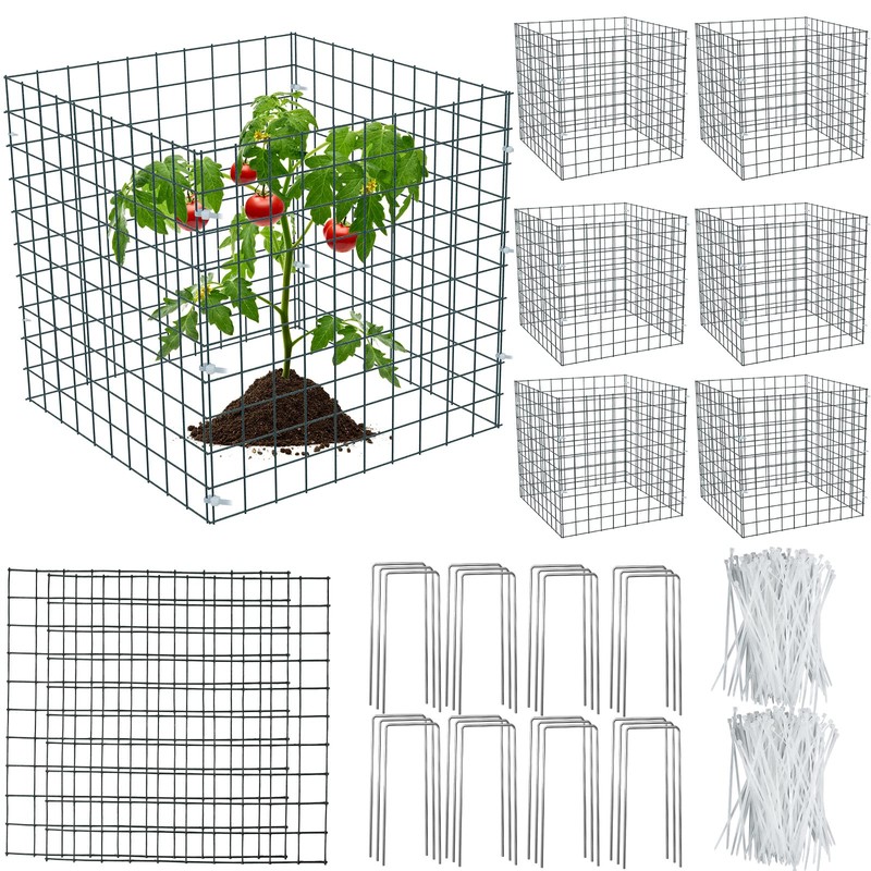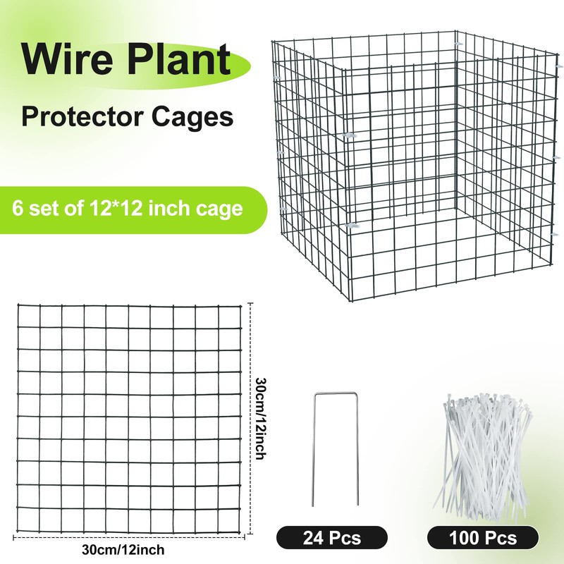 Package includes: 12 Sets of wire plant protector cages + 48 x Ground stakes + 200 x Nylon ties