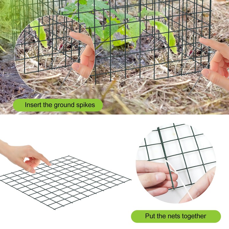 - Easy To Use: these metal garden plant protector is detachable and easy to install, just circle the fence and place the assembled cage around the plants and fix the ground with the U shaped garden stakes to improve its stability