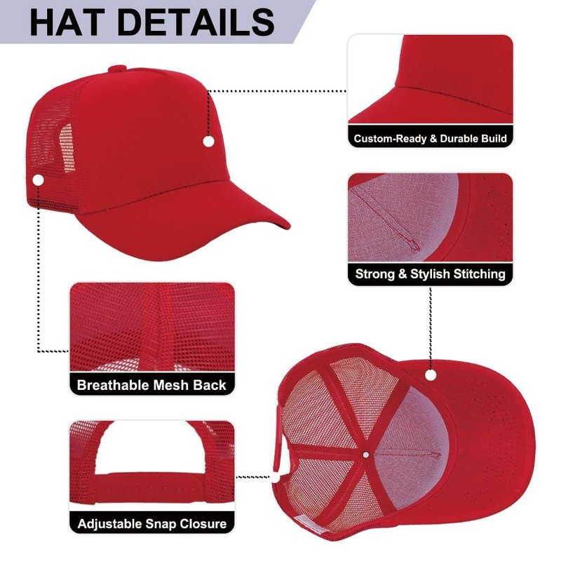 - This Season’s Go-To Cap: Stay cool and stylish all season long with our 5-panel mesh back baseball cap — your perfect companion for outdoor adventures, team workouts, or everyday casual wear. The seamless front panel offers a smooth, uninterrupted surface for clean aesthetics or DIY customization, making this a must-have for creators and trendsetters alike.