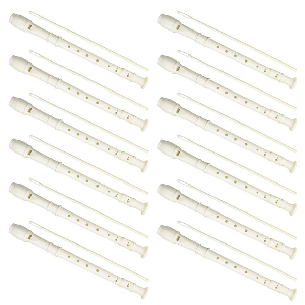 12 Pack 8 Hole Soprano Recorders Descant Flute With Cleaning Rod German Style for Beginner Graduation or Back to School Gift (white)