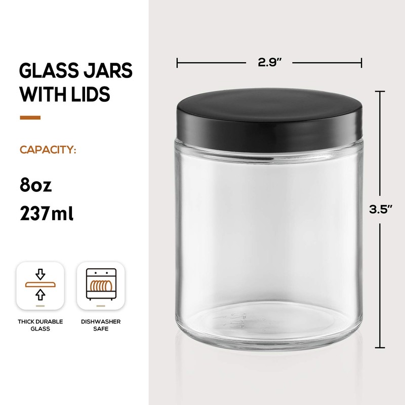 12 Pack, 8 OZ Thick Glass Jars with Lids, Clear Candle Jars with 12 Metal Lids & 12 Plastic Lids - Empty Round Food Storage Containers, Canning Jar For Spice, Powder, Liquid, Sample - Dishwasher Safe