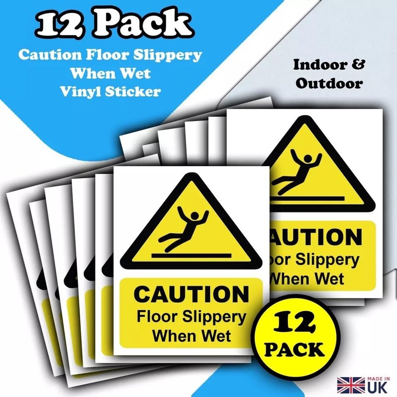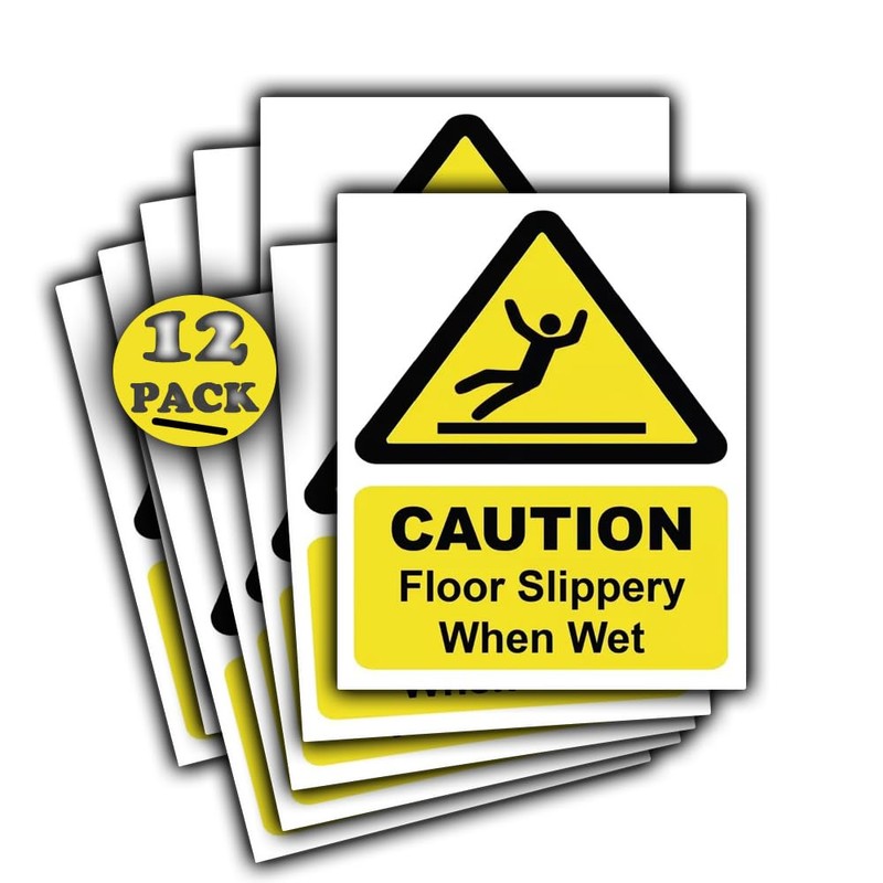 - Pack of 12: Double the safety with Caution Floor Slippery When Wet Sticker Signs, 12 stickers in each pack, allowing you to cover more areas or have extra replacements when needed.