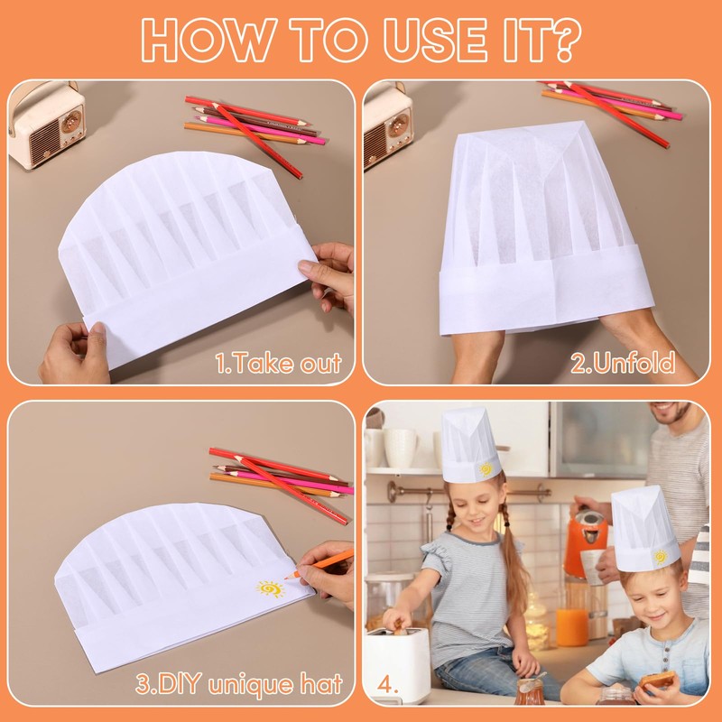 • Widely Used : These kids chef hats are suitable for pizza party decorations, as well as family cooking, cooking parties, craft activities, etc., providing a fun kitchen experience for kids