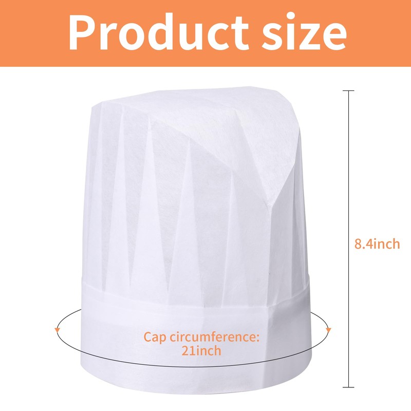 • 12 pcs Kids chef hat : Each chef hat height 8 inches and head circumference about 21 inches. Whether it's at home baking or cooking parties, It's a comfortable chef's hat for kids or adults with small head circumferences
