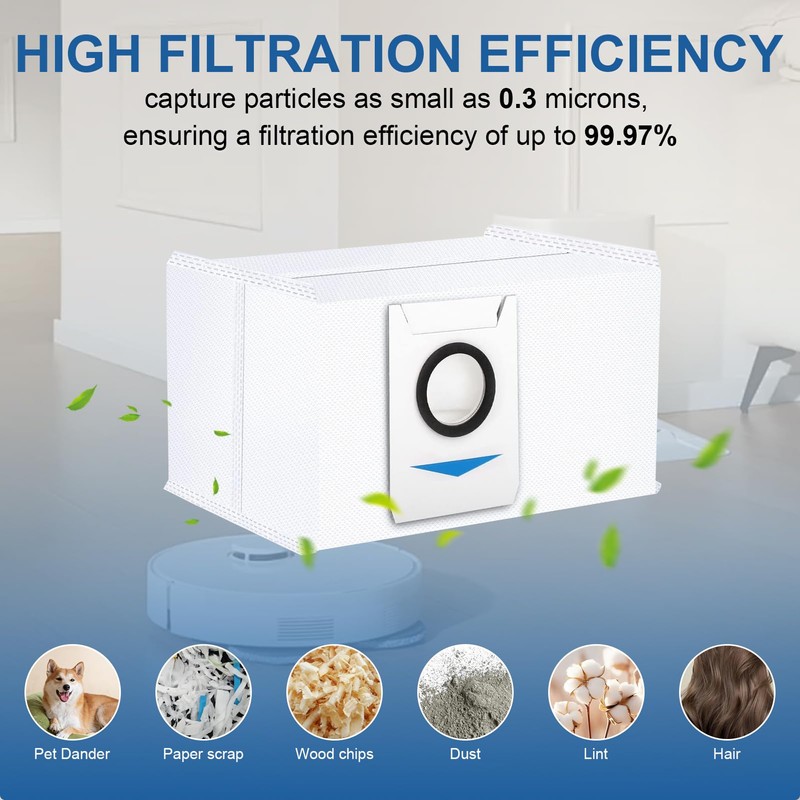 - Premium Material:Each deebot T20 bags for ECOVACS made of high strength protective material with 4 filter layers. The dirt bag has a strong sealing property and easy disposal,ensuring optimal performance over time.