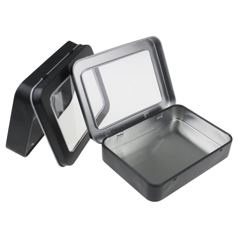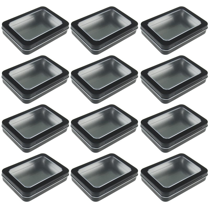 - Contains a total of 12pcs empty rectangular tins with clear view window lids.