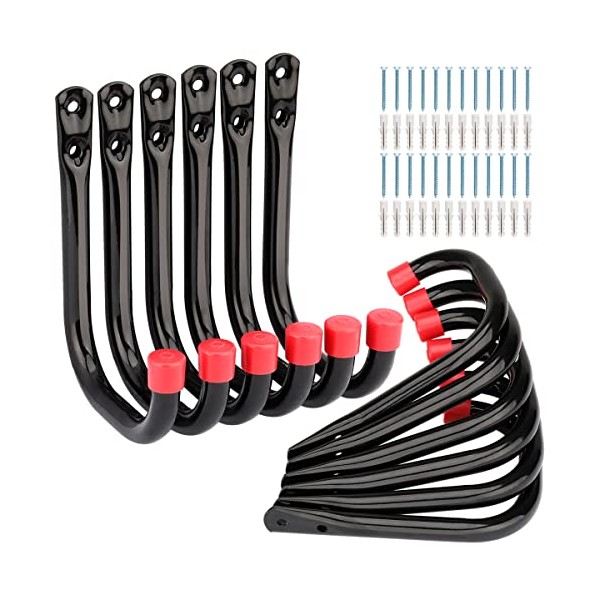 12 Pack Garage Storage J Hooks, 4.1Inches Heavy Duty Wall Mount Utility Hangers by Naikozmo Black and Red 5.6 x 4.1 x 0.5 inches