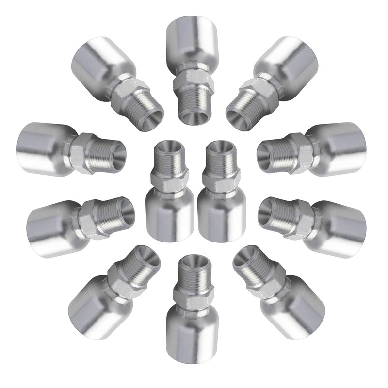 12 Pack Hydraulic Hose Fittings 1/2" I.D. Hose x 1/2" NPT Male ,Durable Carbon Steel Ends for Single Wire Hydraulic Line Systems