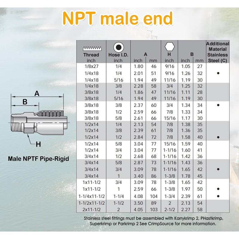 • 【Professional-Grade Hydraulic Fit】– Designed to crimp with 1/2" I.D. hydraulic hoses and connect to 1/2" NPT ends for precision applications