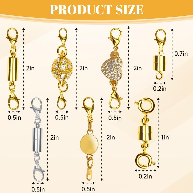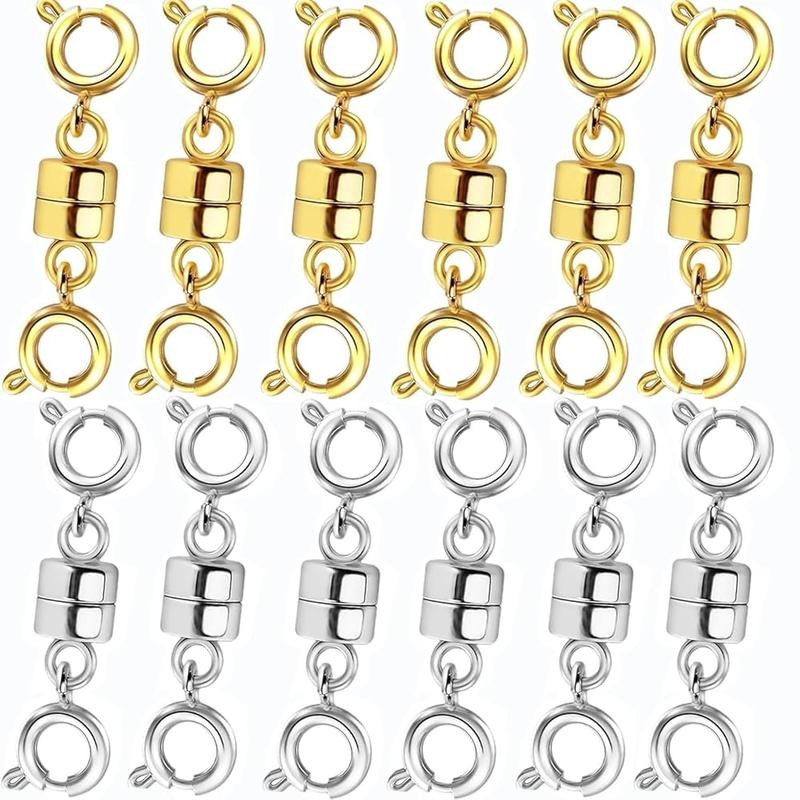 - 12 Pack Magnetic Necklace Clasps and Closures Necklace Jewelry Extender with Strong Magnet Magnetic Gold and Silver Plating Gift Stainless Steel Charm