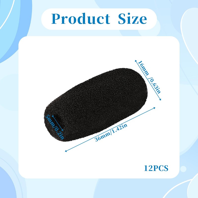12 Pack Mini Foam Microphone Windscreen, Headset Microphone Windscreen, Sponge Foam Microphone Windscreen, High Density Mic Covers for Small Lapel and Lavalier Microphones, 0.2" Diameter (Black)