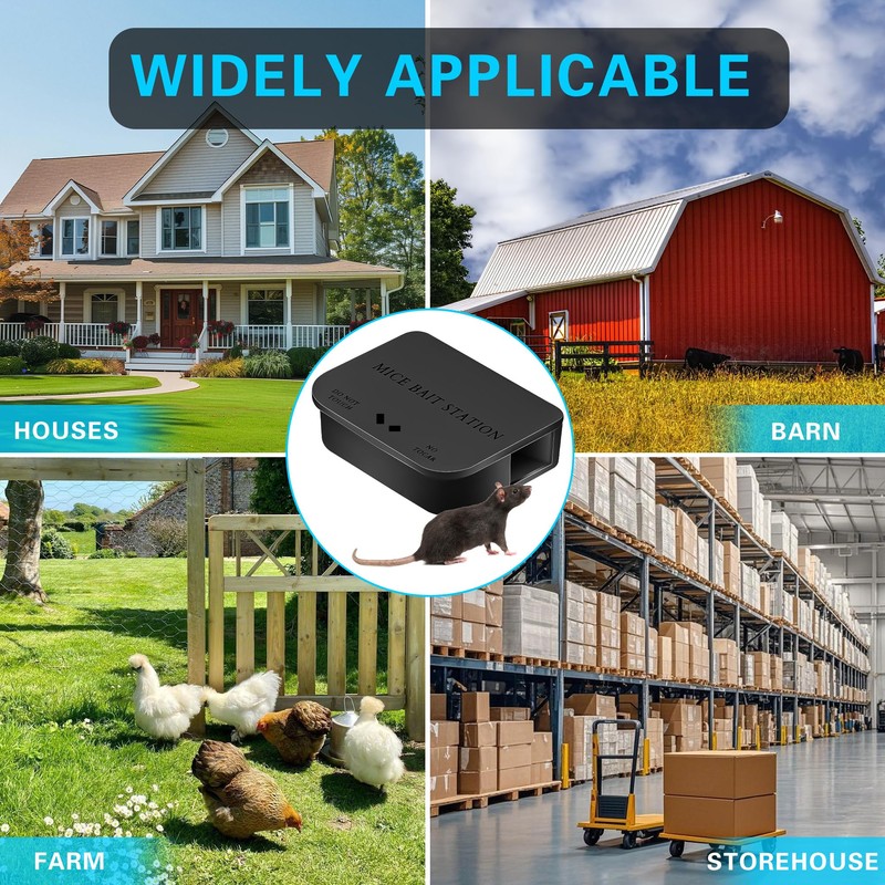 - Widely Use Indoor and Outdoor: Our outdoor mouse poison bait station is weatherproof, harmonious black color makes this key required mouse station can be perfectly integrated into your indoor and outdoor places. Widely used in kitchens, lofts, living room, bathroom, bedroom, courtyards, garages, warehouses and more
