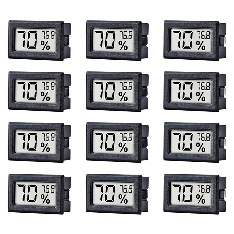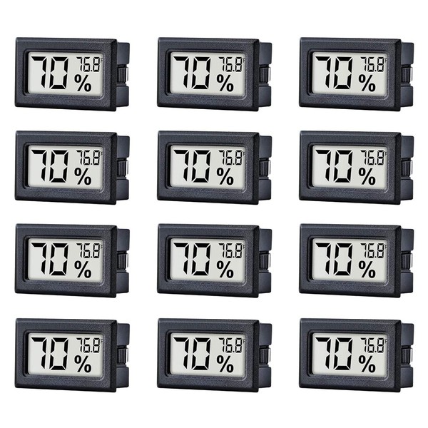 12 Pack Pgzsy Mini Small Digital Electronic Temperature Humidity Meters Gauge Indoor Thermometer Hygrometer LCD Display Fahrenheit (℉) for Humidors, Greenhouse, Garden
