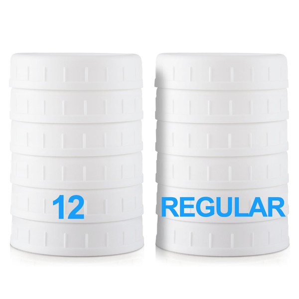 12 Pack REGULAR MOUTH Mason Jar Lids for Ball, Kerr and More - Plastic Storage Caps for Mason Jars, Canning Jars - Leakproof - White