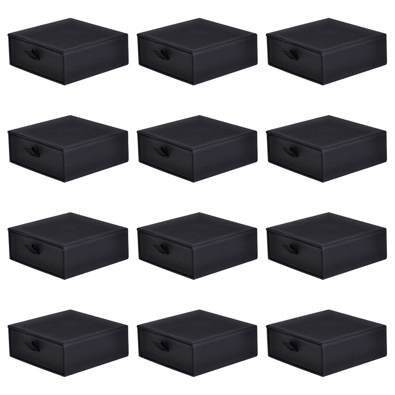 12 Pack Set Cardboard Drawer Display Jewelry Boxes, driew 3.5x3.5 1.4inch Black Gift Boxes Thick Paper Box Bulk Jewelry Gift Packaging Gift Case Sponge Insert and Lids Small Kraft Paper Box for Rings