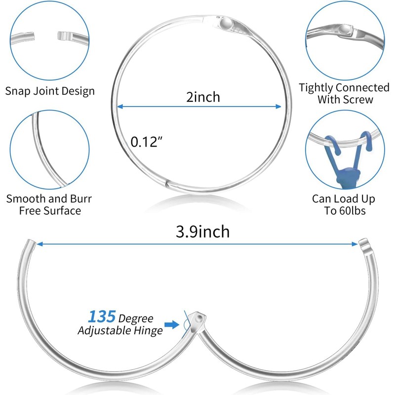 - 【Wide Application】Shower curtain rod rings can widely applied for most kinds of curtains,such as shower curtain,window curtain,french window curtain and so on,perfect addition to any room.Loose leaf binder rings are also suitable for memo filing,key rings,organizing tool,scrapbook,photos,sample book holders,scrapbook,contract file or other proper applications.