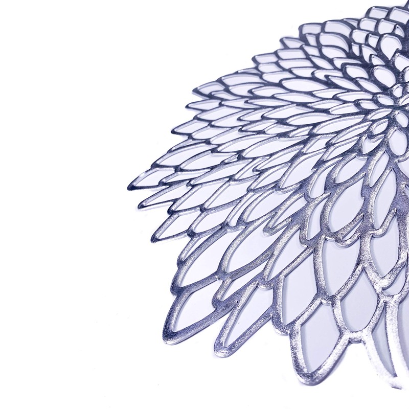 12 Pack Silver Metallic Round Placemats Laminated Vinyl Leaf Dining Table Decorative by Snowkingdom