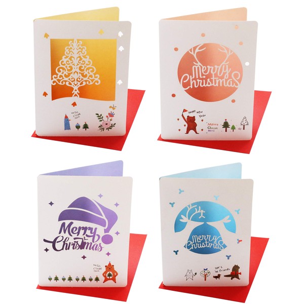 12 Pack Small Size Merry Christmas Greeting Cards & Envelopes, 5.5" x 3.6“ Size, Christmas Hat Deer Tree Delicate Hollow Out Design with Red Envelope, Pack of 12