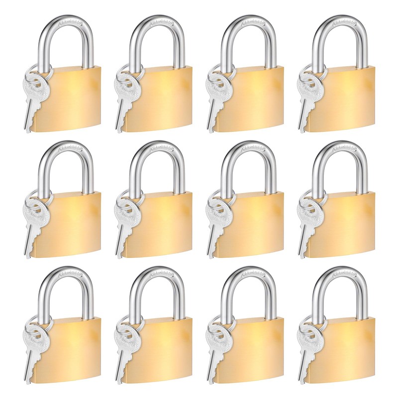 12 Pack Solid Brass Same Keyed Padlock, Keyed Alike Padlock Waterproof and Rustproof Lock with 1-1/4" Wide Body, Padlocks with Keys for Toolbox, Luggage, School lockers, Backpacks, Garages and Fence