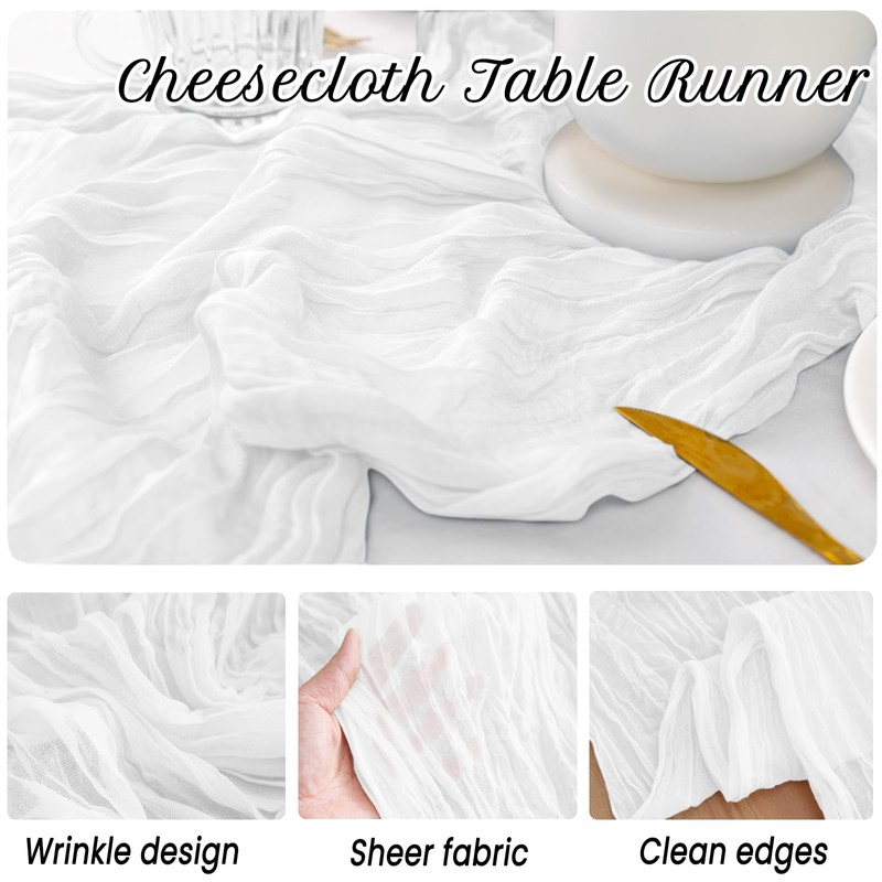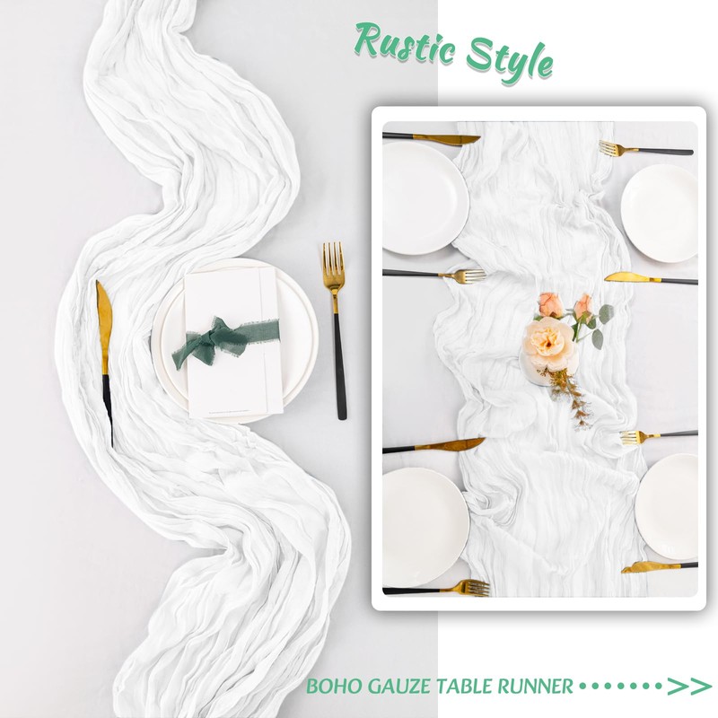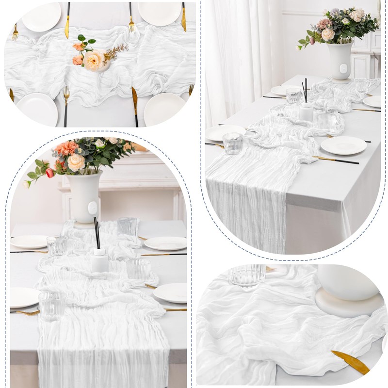 • 【Elegant 10-Foot Design - Perfect Drape Effect】Dimensions: 21"W x 120"L (10 ft). This 12-pack long table runner set meets all banquet needs. The solid-color rustic table runner design perfectly covers 6-8 ft tables with gracefully cascading edges. Connect multiple cheesecloth table runners for extra-long tables, or creatively transform into wedding arch decor, chair sashes, or gift wrapping. Lightweight fabric sways gently in the breeze, creating dreamy bohemian ambiance.