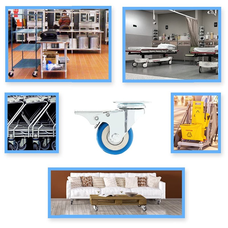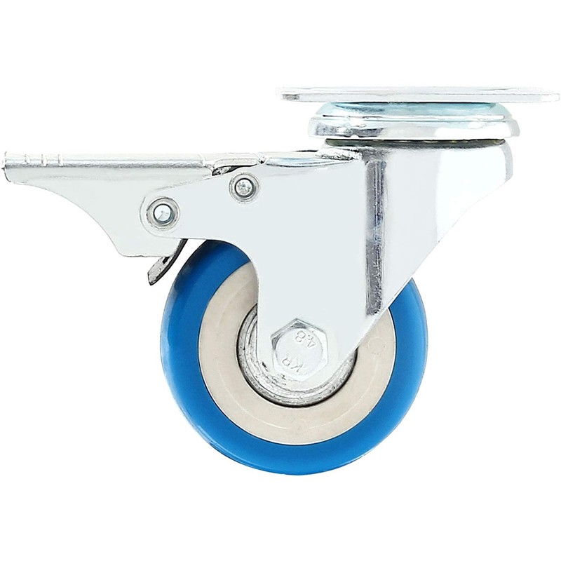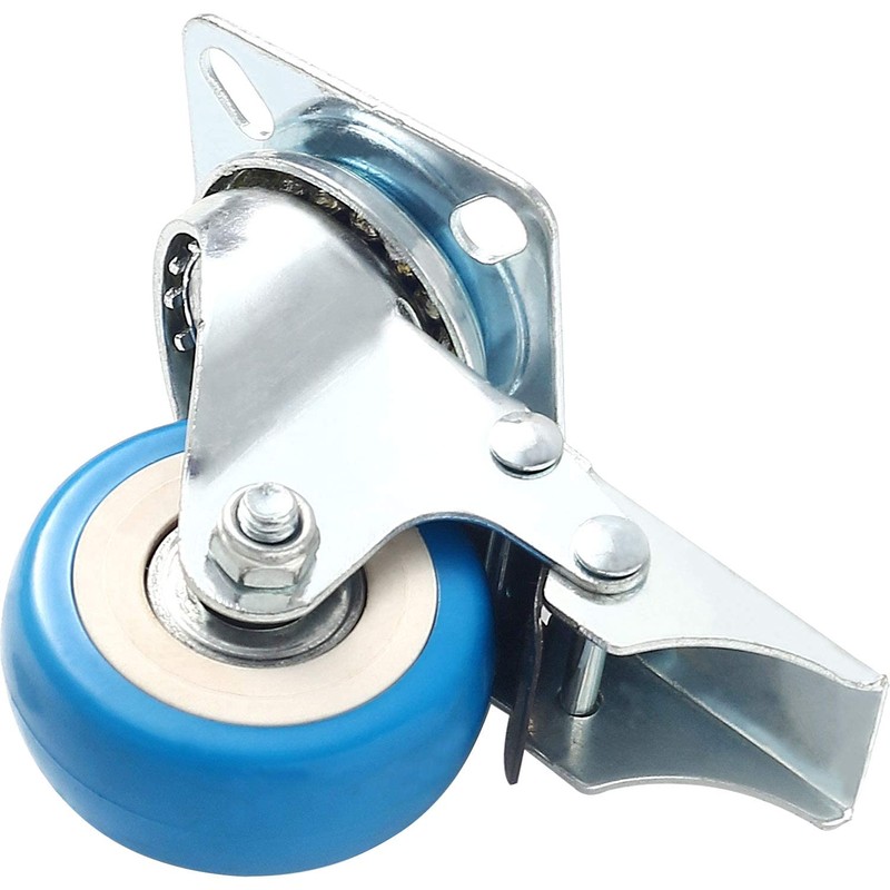 WHEEL MATERIALS AND PERFORMANCE: Heavy duty casters made of polyurethane wheels. COLOR: Blue. Ball bearings: Double ball bearings. Premium Caster wheels are made of high-quality polyurethane wheels with strong abrasion resistance, silent shock absorber, wearproof, no drag marks and enhance the impact resistance of the whole caster.