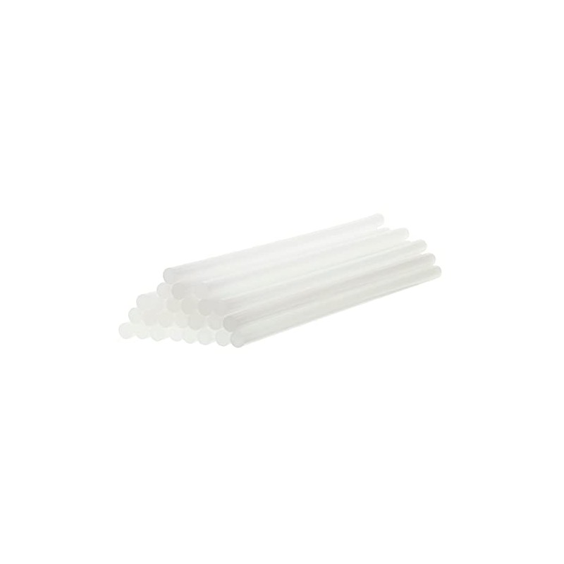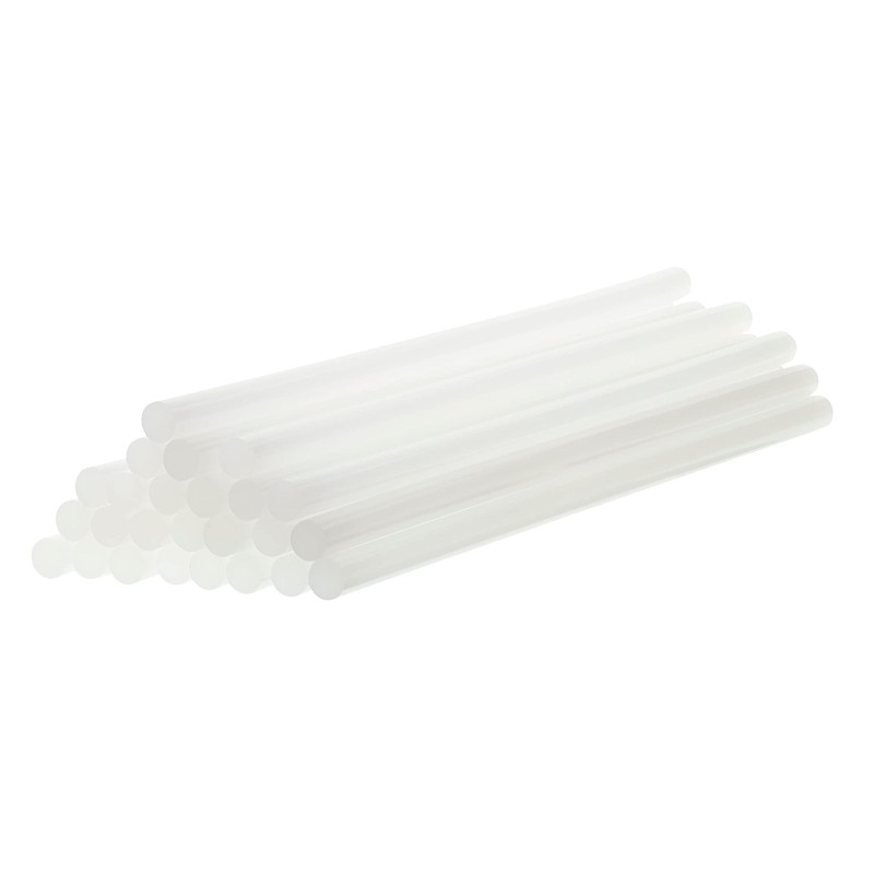 - Clear. 8” x 0.27” (203mm x 6.8mm) stick size. 12 packs (25 sticks per pack, 300 total sticks). All temperature. 45 second extended working time. Impact tough. Weather resistant. Bonds with wood, metal, glass, plastic, floral, fabric, leather, foam and more.