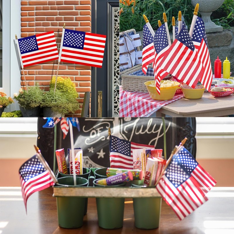 - 【Unique Patriotic Decorations】The small American flags are perfect for decorating your home, it can be used as outdoor/indoor decorations, great for putting the American flag in your garden, patio, bouquets, flower pots, decorating your house, birthday parties, various events or anywhere you want to display the small American Flags.