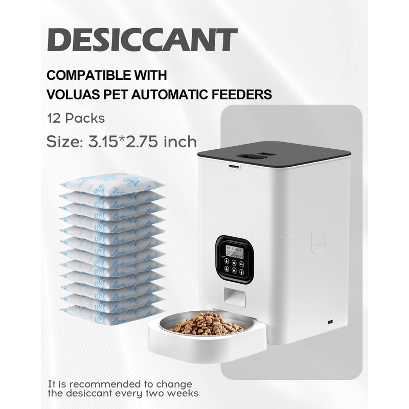 12 Packs Pet Food Desiccant Bag Compatible with Voluas Automatic Cat Feeder, Desiccant Packs Replacement for Dog Treat Container/Automatic Pet Feeder, Keep Pet Food Fresh