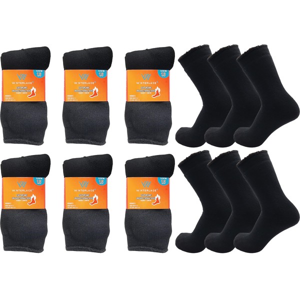 12 Pairs Mens Thermal Socks, Brushed Interior Warm Winter Thick Heavy Duty Cushioned Crew Sock, Bulk Pack (US, Alpha, One Size, Regular, Regular, Black)