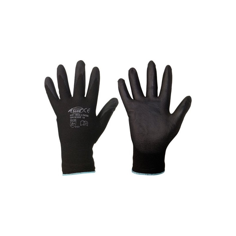 12 Pairs of Mechanical Gloves PU Coated Black Size 6-11 (M)