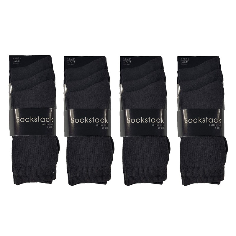 12 Pairs of Mens Designer Socks, Cotton Rich Designs, Size 6-11, By Sockstack® (Plain Black)