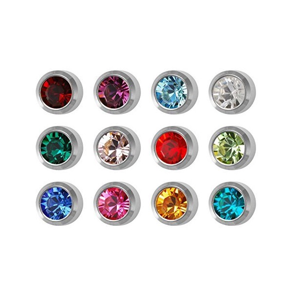 12 Pairs Studex Birthstones Mini 2mm Stainless Steel Bezel Setting Ear Piercing Stud Earrings