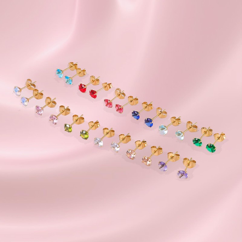 - BIRTHSTONE STUD EARRINGS - There are 12 different colors of cubic zirconia which corresponding to the birthstones of months. The cz is sparking