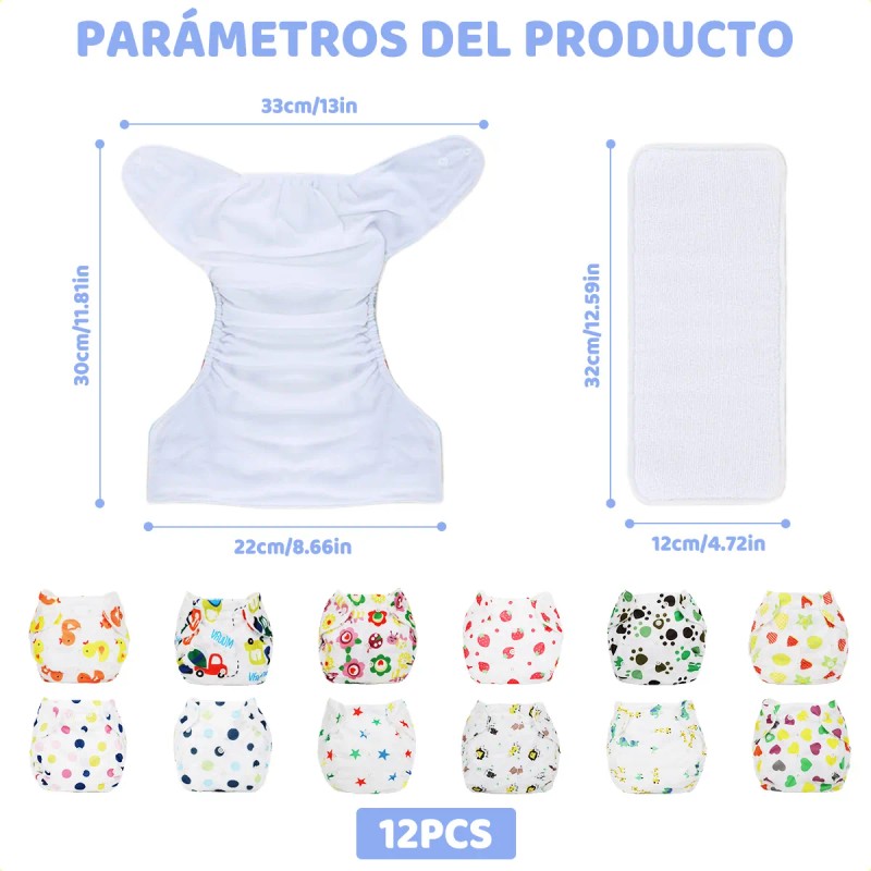 ✅ Paquete con 12 pañales reutilizables de tela