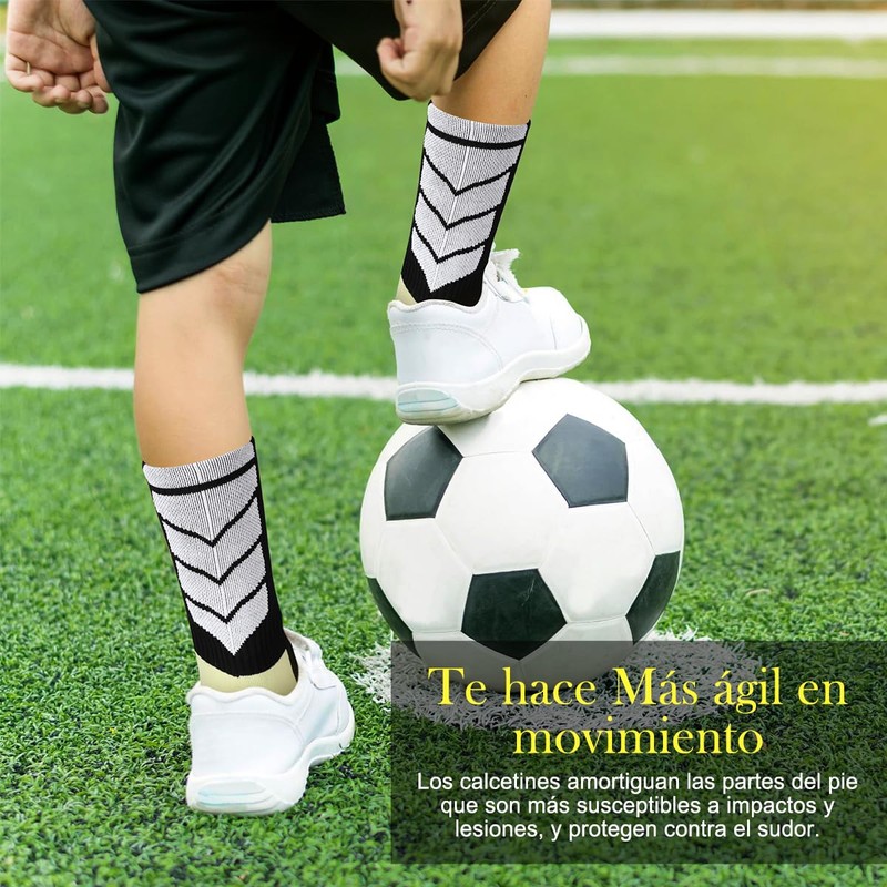 - 【Material de alta calidad】 Los calcetines de fútbol están hechos de material de alta calidad, 75% poliéster-algodón, 15% poliéster y 10% elastano, la proporción de composición perfecta para calcetines deportivos, lo suficientemente suaves, muy elásticos y cómodos. También proporciona una excelente transpirabilidad y capacidad de absorción del sudor para satisfacer las necesidades del ejercicio, manteniendo los pies frescos y secos durante todo el día.