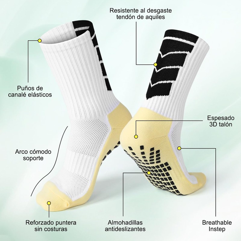 - 【Antideslizante y duradero】 La parte inferior de los calcetines deportivos antideslizantes está diseñada con silicona en forma de punto, que puede aumentar el agarre y prevenir lesiones, y también puede mejorar eficazmente su rendimiento atlético durante el entrenamiento, para que pueda completar con éxito cualquier competencia. . Las zonas de la puntera y el talón están reforzadas para garantizar una buena resistencia a la abrasión y no se deteriorarán después del lavado a máquina.