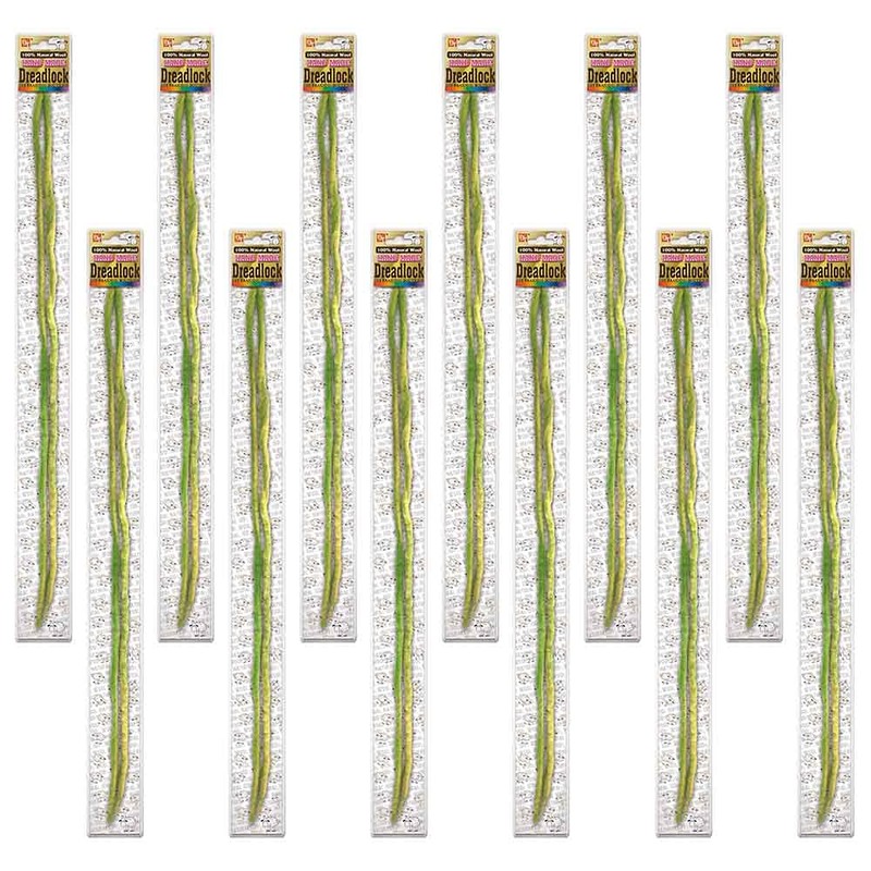 12 Pcs 100% Natural Homemade Hair Wool Dreadlocks 43 Inch Multicolor Mixed DIY Braiding Extensions Accessories (Lime)