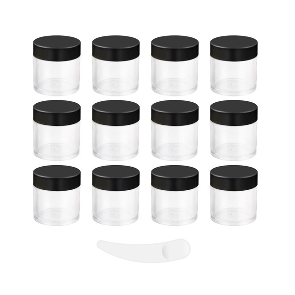 12 Pcs 10ML Empty Cosmetic Jars, Sample Pots, Travel Pots with Spatula for Cosmetics, Nail Powder, DIY Makeup Creams (12 Pcs, Black)