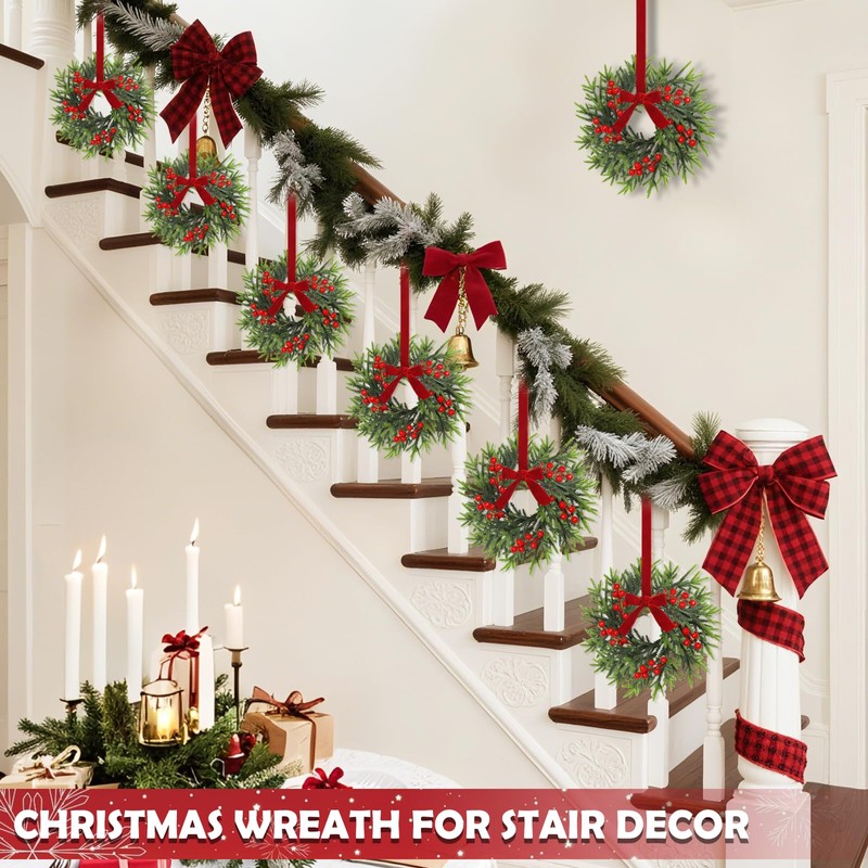 - Versatile Christmas Decor: The mini wreaths are ideal for kitchen cabinet Christmas decorations and Christmas wreaths for front door, just hang them on your fireplace, door, walls, in kitchen, dining room, garden, office, apartment and other places