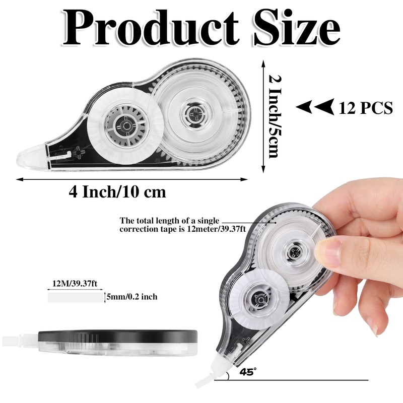 - 【Package includes】You will receive 12 pcs 5mmx12m/0.2x472inch correction tapes,enough to meet your use, sharing and replacement needs.