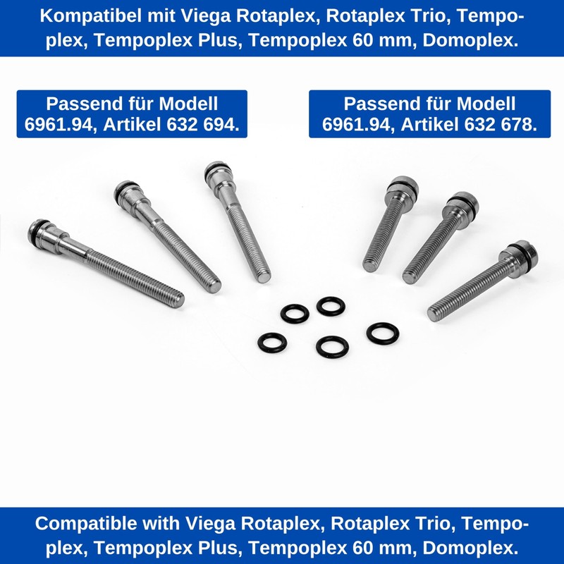 • Screws replacement seals compatible with VIEGA drain set Rotaplex - Tempoplex - Domoplex - Domoplex - The shower drain screws seals are suitable for Rotaplex, Rotaplex Trio, Tempoplex, Tempoplex Plus, Tempoplex 60 mm and Domoplex drain fittings.