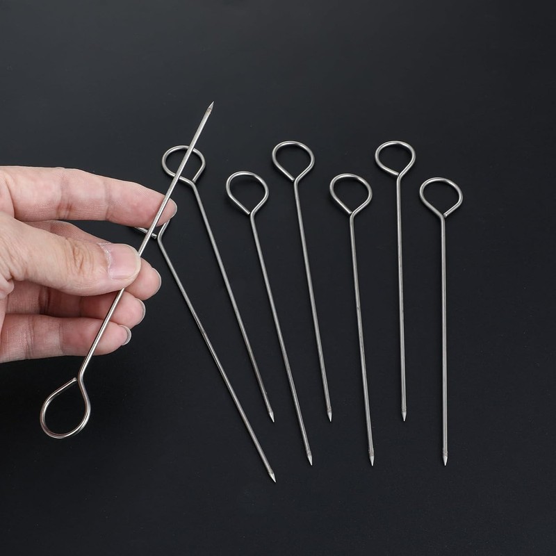 - ENHANCED FLAVOUR & MOISTURE LOCK: Stainless Steel Turkey Skewers Effectively secure turkey or chicken to help retain moisture and flavour. With or without twine, these ties ensure tender, juicy turkey or chicken meat, ideal for kebabs, fruit skewers and crafts.
