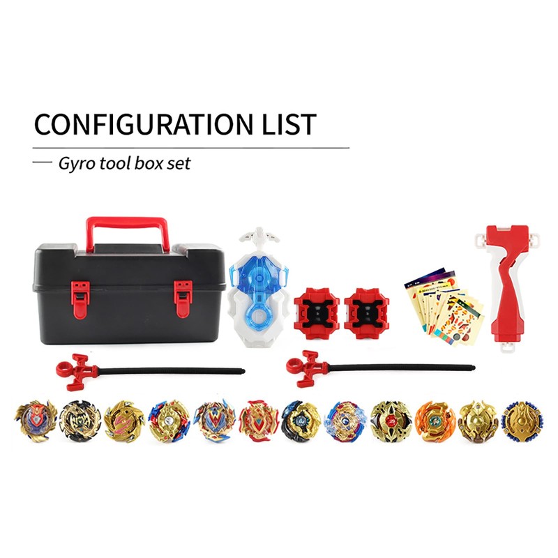 12 Pcs Battling Top Gyros Turbos Set, Spinning Top 4D Toy Gift 3 Launcher with Box Set-07A