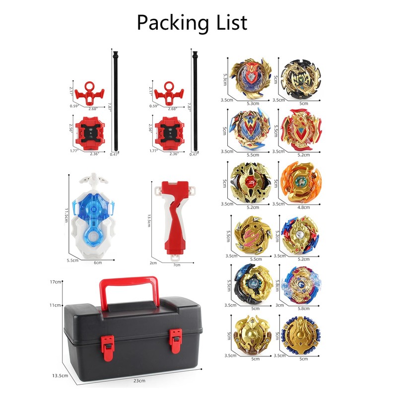 • PRODUCT LIST This spinning top set includes 8 spinning tops and 3 new upgraded throwers and accessories and is a great gift for 6 year old kids.