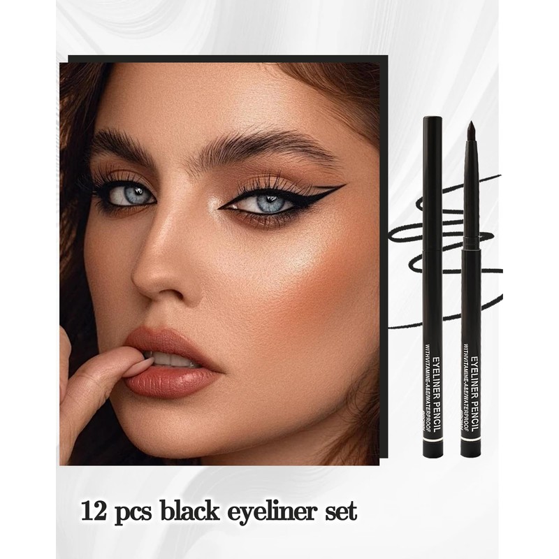- 12 Pcs Eyeliner Pencil Set - Get the perfect long lasting eye look with this black/brown gel eyeliner pencils set. A set of eye liner pencils that you can put in different places, such as your bag and makeup counter, to reduce the hassle of finding and easily create bright eyeliner.