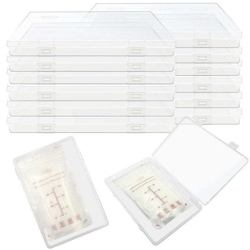 12 Pcs Clear Flat Breast Milk Freezer Storage Organizer Space Saving Breastmilk Plastic Storage Box Freezer Tray Breastfeeding Bag Fridge Organizer for Breastfeed Organization Tools