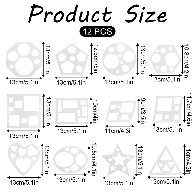 - Package Contents: This set contains 12 templates of different geometric shapes, which are great for kids to explore their artistic skills in painting and coloring projects