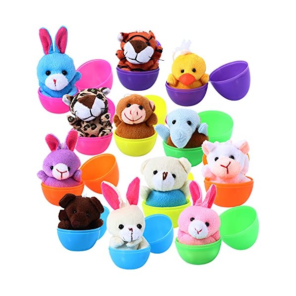 12 pcs Easter Eggs Filled with Mini Plush Animals Toy for Easter Basket Stuffers/Fillers, Easter Eggs Hunt, Easter Party Favor