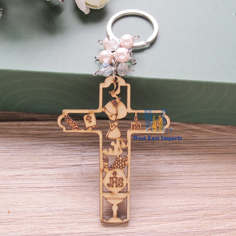 - 12 Pcs First Communion Wood keychain favor for guest.